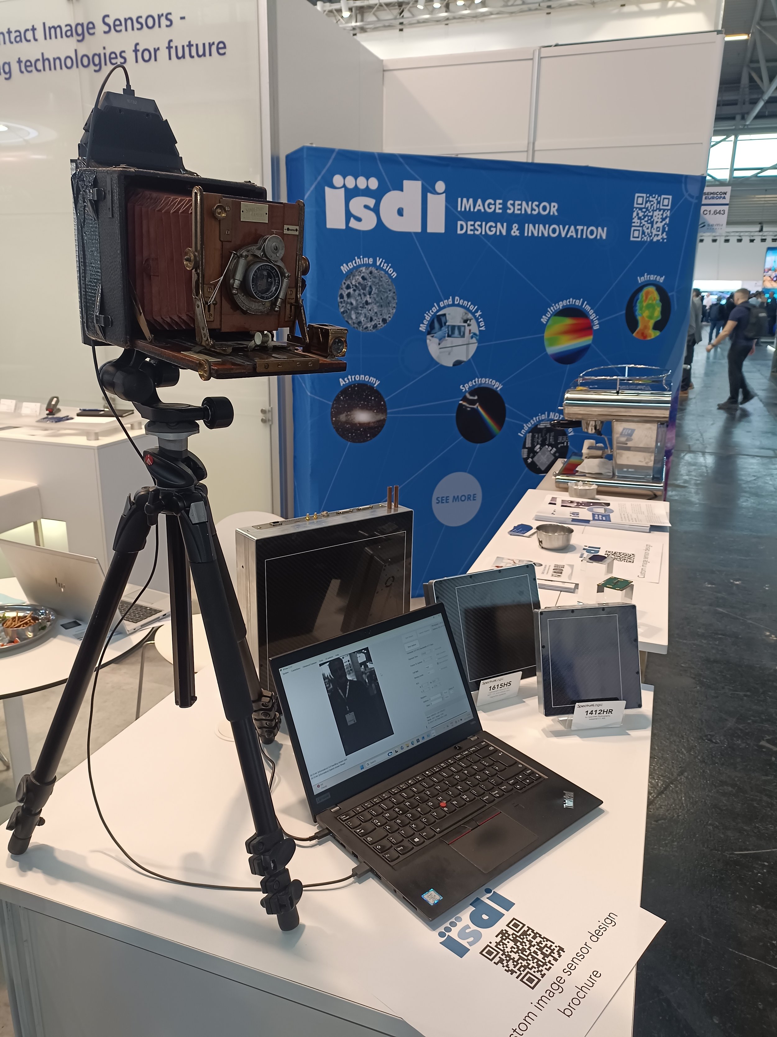 The vintage camera became a real eye-catcher at the booth, attracting many interested visitors who inquired about the technology. It was a great example of how engineering creativity can merge century-old optics with modern sensor technology.
